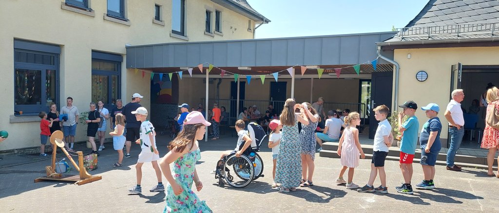 Am letzten Schultag heißt es immer Abschied nehmen. Nachdem wir schon unsere langjährige UBUS-Kraft Frau Schumacher-Gudelius verabschieden mussten, stand nun der Abschied von unserer 4. Klasse an. Dazu hatten sich auch wieder viele Eltern auf dem Schulhof eingefunden, was uns immer besonders freut. Die Viertklässler sangen ihr Abschiedslied „An Tagen wie diesen“, die Drittklässler hatten eine Darbietung vorbereitet und zwei Schülerinnen der scheidenden 4 überraschten uns mit persönlichen emotionalen Vorträgen. Da blieb kein Auge trocken. Wir wünschen euch, liebe Klasse 4, einen erfolgreichen Start an euren neuen Schulen, engagierte Lehrkräfte sowie nette Mitschülerinnen und Mitschüler. Wir freuen uns, wenn ihr uns ab und zu besuchen kommt und von euch hören lasst!