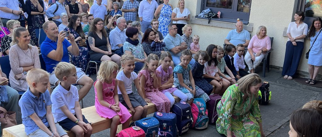 In diesem Schuljahr besuchen 14 Schülerinnen und Schüler unsere 1. Klasse. Feierlich wurden die Kinder der „Seepferdchen-Klasse“ mit ihren Familien heute auf unserem Schulhof begrüßt und in die Schulgemeinde aufgenommen. Wir freuen uns, dass ihr da seid und wünschen euch eine schöne und aufregende Schulzeit!