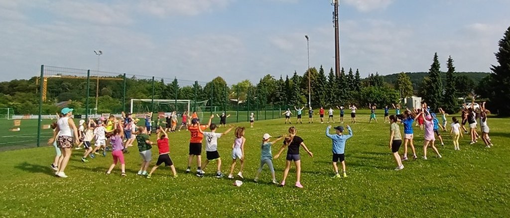 Heute fanden bei gutem Sport-Wetter unsere Bundesjugendspiele statt. Alle Kinder gaben ihr Bestes und maßen sich im Sprint, beim Springen durch Reifen oder über Bananenkisten, beim Weitwurf und im Ausdauerlauf. Zur Belohnung gab es im Anschluss frisches Obst und eine Wasserschlacht mit den Lehrkräften. Die Jahrgangssieger erhielten mit ihren Urkunden traditionell ein kleines Geschenk und viel Applaus von der Schulgemeinschaft.